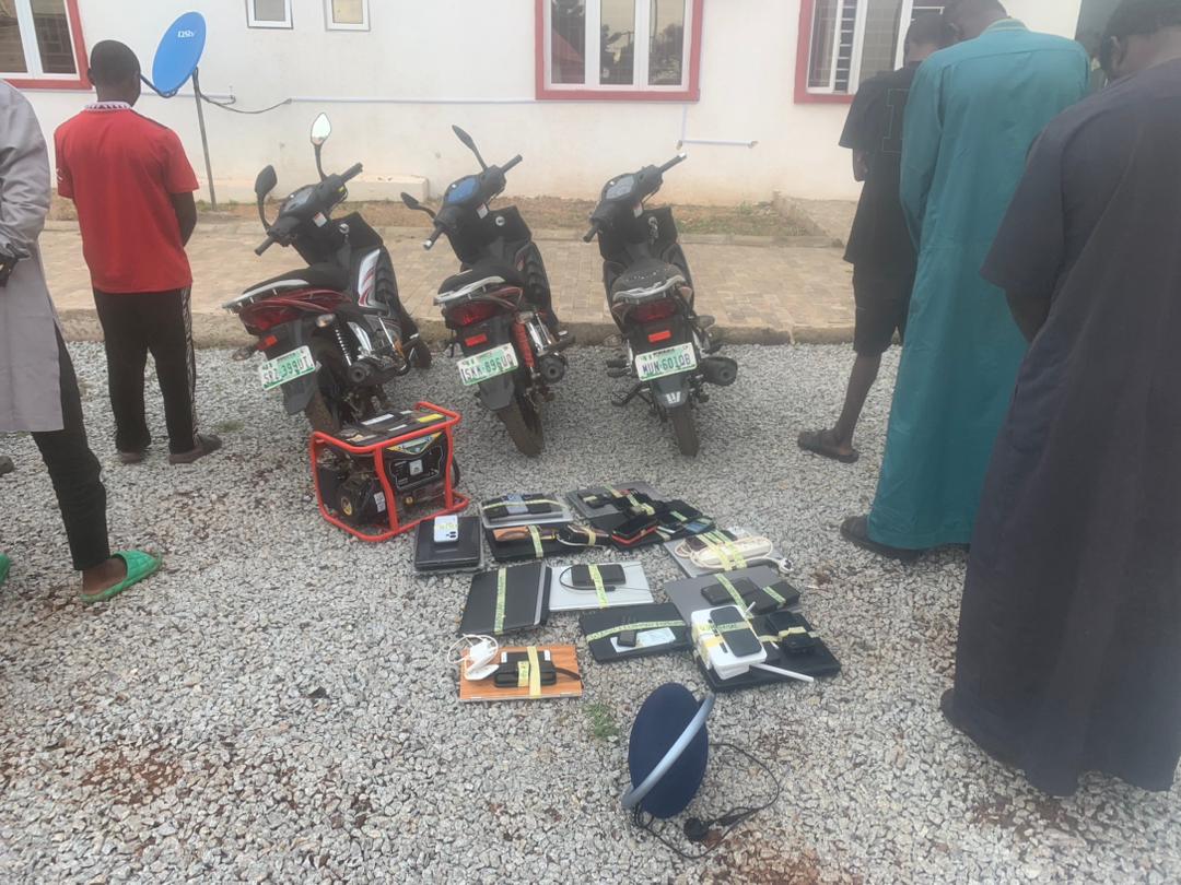Items recovered from them include two Toyota Corolla cars, three motor cycles, laptops, phones and a generator.