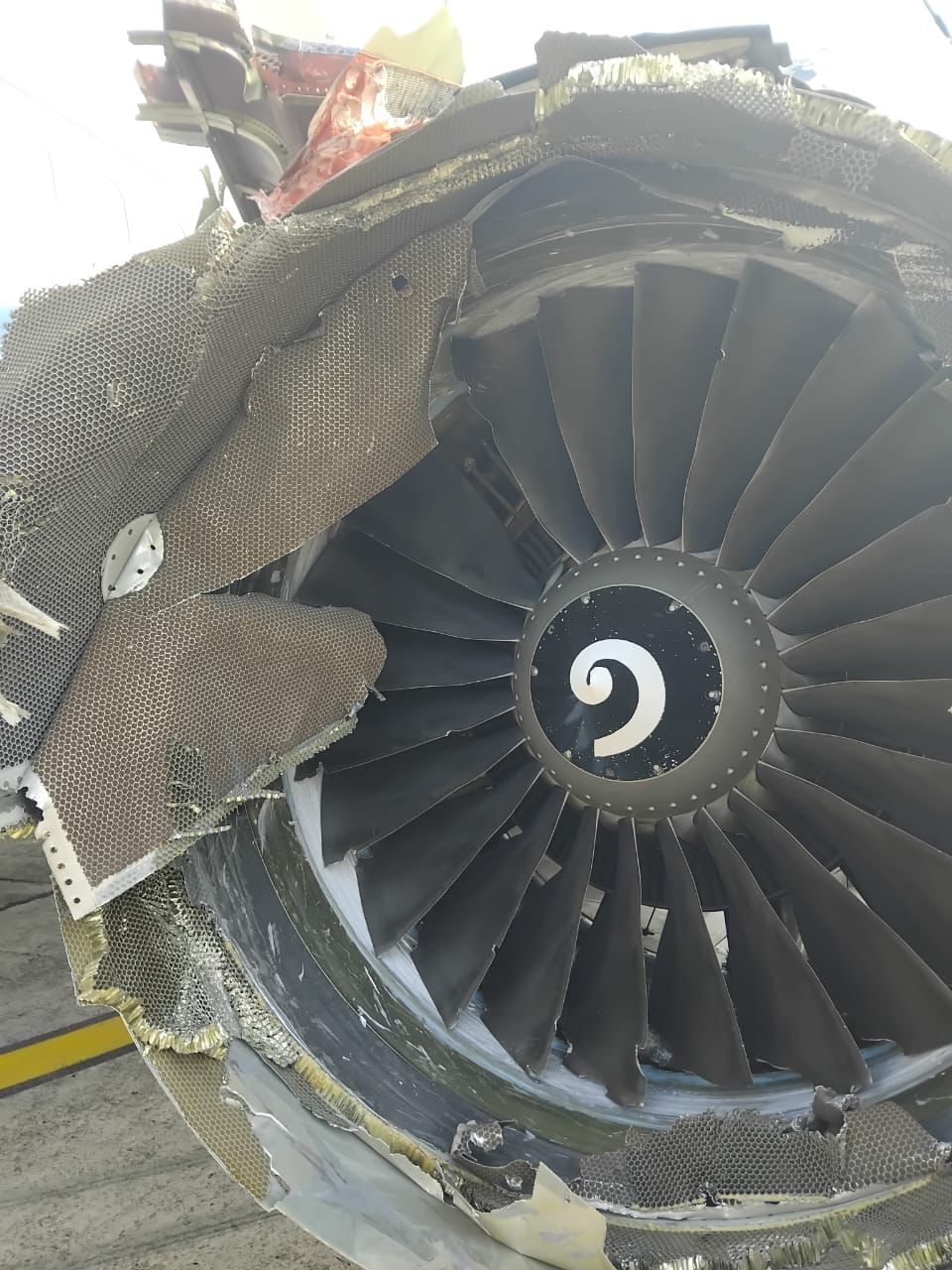 Preliminary visual assessments conducted at the diversion airport indicated significant damage to the affected engine.
