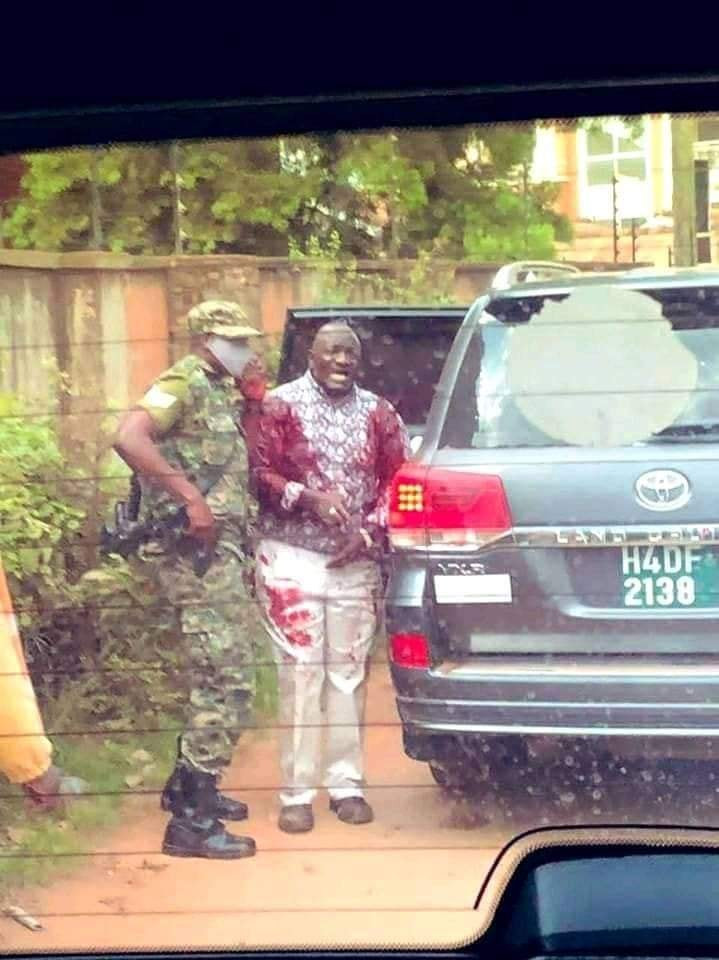 Images circulating on social media showed Wamala with his mouth open, in apparent distress beside the car and his light-colored trousers splattered with blood. Images also showed bullet holes in a car window and casings on the ground.